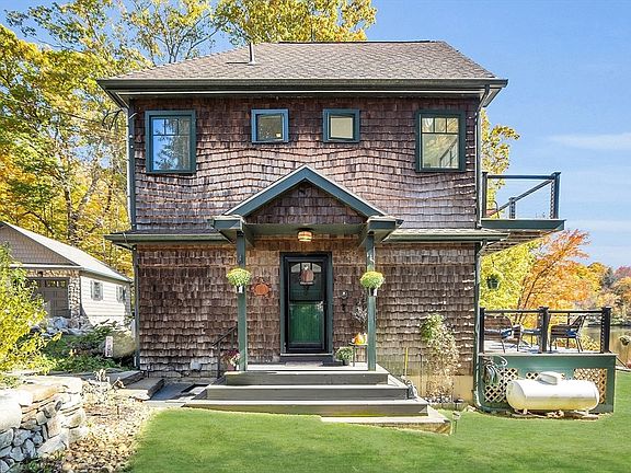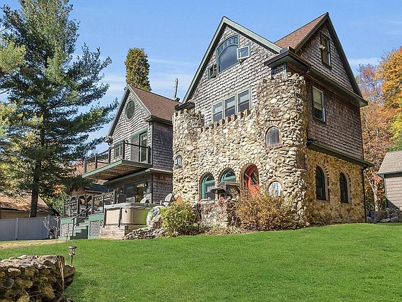 Lakefront Living at its best. Explore this beautiful two-bedroom, two-bath contemporary home with direct water access to Lake Whittemore. This home sits on 1.27 acres with a fabulous two-car garage and a large storage shed. You will find a gorgeous kitchen/dining room. The Kitchen was recently updated with SS appliances, new counters, beautiful Brazilian cherry hardwood floors, and a full bath with a glass shower door. Windows galore provides impressive views of the lake. Step into the living room, hardwood floors and stone walls with a gas stove for additional heat source. Up the wood staircase, into the family room with stunning views again, and into the massive primary bedroom. There is wall-to-wall carpet, a full bath with a shower, and a soaking tub. Up to the 3rd floor, you will find another generously sized bedroom with lake views. No matter where you look, the lake is your view—plenty of space on the rear decks with a hot tub; this home provides the tranquility of lake living.