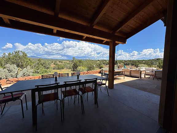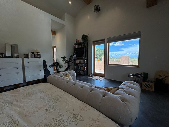 GET READY TO FALL IN LOVE WITH THIS DREAMY MODERN RANCH ON 24+ ACRES: 21 Cattle Drive is the kind of place that feels like a unicorn - rare, enchanting, and magical. This home has it all: space, style, and some seriously stunning views. It's just a short drive from downtown Santa Fe, but feels like your own private sanctuary. BIG, BRIGHT, OPEN: With over 3,000 sq. ft., this home gives you plenty of room to spread out. You've got 2 spacious ensuite bedrooms and 1 flex room currently being used as an additional bedroom. Perfect for hosting family and friends. DREAMY LIVING SPACES: The open living area is a total vibe, with natural light pouring in, gorgeous, modern, polished walls, and wood beams that give it that true Santa Fe charm. Plus, the kiva fireplace is perfect for cozy nights in.