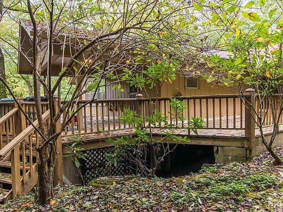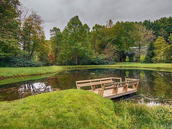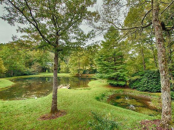 ON GOLDEN POND...and it's yours! This 4 BR/4 Bath home is conveniently located close to downtown Highlands and sits on a quiet +/- 2.1 acre lot with small pond in the back yard complete with small dock for sunning or fishing! The deck wraps around 3 sides of the home providing abundant outdoor living space. The side porch is partially covered, providing a perfect place to grill even if it's raining. The spacious master bedroom suite is on the main level along with another large guest bedroom suite. The living room has a wood burning fireplace and is open to the dining room and overlooks the backyard pond. The lower level has 2 more large bedroom suites and another entertainment room with a bar for entertaining. There are 2 laundry rooms and entrances on both levels making this a perfect rental and investor's delight!! Good parking behind a gate and 2 car carport. Level grounds with old stones and moss. A short drive to downtown Highlands. Furnished and ready to enjoy the fall foliage!!