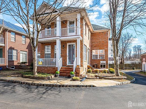 This BEAUTIFUL, brick detached home is simply the best. Handsome exterior and entry with brick and proper front porch overlooking lovely lawn. This unit is located in the back and is a corner unit, offering more private living and overlooking the circular lawn common space. First Floor offers great open concept floor plan, natural sunlight throughout, sliders to side patio. Basement is beautifully finished, property offers a Two Car Garage. Upon entry you are greeted by a lovely living room with cozy gas fireplace, formal dining space open to fabulous NEW kichen. First floor also offers a bedroom and full bathroom. Off the living room are sliding glass doors which lead to the patio with space to grill and dine outdoors. Newly renovated kitchen offers modern gray ceiling height cabinentry, farmhouse sink, granite countertops, stainless appliance, lovely peninsula island, which is perfect for gathering morning, noon or night. Basement space is fully finished, offering high ceilings, full tiled flooring, overhead lighting. The basement space is so large you can easily have a home gym and home office; or a media room and recreation room, your choice. Second floor offers primary bedroom and large second bedroom, each with private full bathrooms. Primary bedroom has its own private balcony, perfect space for a morning coffee or tea, while overlooking the lawn. Primary also offers an oversized closet / dressing room and a fabulous En suite w jacuzzi tub, standing shower and lots of storage and ample natural light. It's a retreat withing the home. Second bedroom is large and offers NEW private bathroom. All this and so much more within a short distance to Whole Foods, NYC train and Metuchen downtown. You're going to like it here.