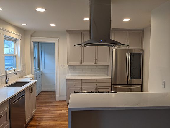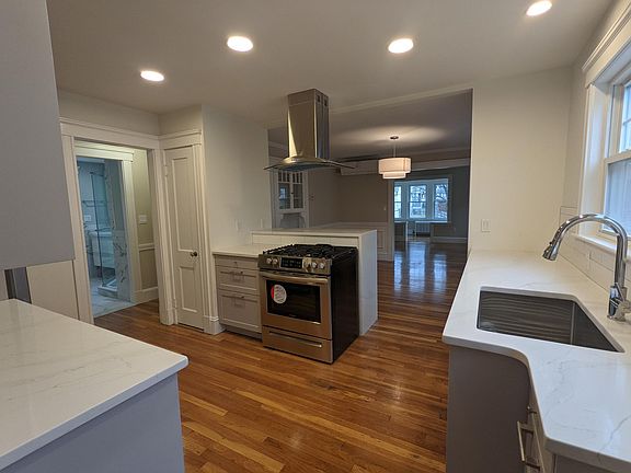 Be the first to move in Enjoy living in your brand-new apartment on a pretty tree lined street in a 2 family in Medford on the first floor. All new stainless-steel appliances, deluxe refrigerator, gas cooking with SS hood, white quartz countertops and a breakfast bar. Formal dining room with glass door hutch. Large living room with cosmetic mantle and fireplace. Sun-room with windows on all 3 sides off the living room. Newly refinished hardwood floors. Updated lighting including recessed lights and a pretty pendant light in the dining room. All new split Air Conditioning /Heat in all rooms with temperature controls or use the updated gas steam system in the winter, your choice. The luxury bathroom has marble style tiles and fully glassed in and fully tiled shower. Floating vanity. Lotos of closets everywhere. Side by side private laundry in the basement along with plenty of storage for your things. Large private screened in porch to enjoy outside fresh air with no bugs in the summer months. YOU WILL LOVE It Tenant responsible for First Security Deposit and Realtor Fee. Tenant responsible for separate utilities. All efficient and updated. Insulated windows. Landlord pays for water and waste. Year around street parking plenty of spaces on both sides of a one-way street. No Smoking and no pets allowed.
