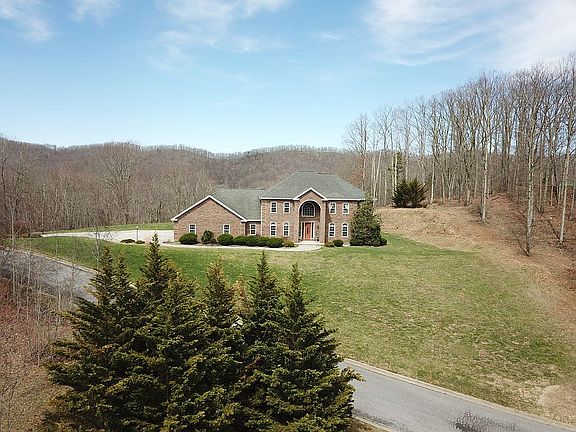 Perched in a picturesque setting, this all-brick home offers incredible 360° views that create a breathtaking backdrop from every angle. Designed with a contemporary layout and classic high-end finishes, this residence seamlessly blends elegance and functionality. Step inside to an open-concept main living area where the gourmet kitchen flows effortlessly into the great room, framed by graceful arches leading to the dining room and foyer. A striking spiral staircase serves as a centerpiece, adding a touch of grandeur. The formal living room provides additional space for entertaining or quiet relaxation. While the primary master suite is located upstairs, the main floor features a spacious bedroom with an adjacent full bath—ideal for guests or as a potential future master for those seeking single-level living. A convenient half bath is also located off the kitchen and mudroom. Upstairs, the expansive master suite is a true retreat, complete with a luxurious en-suite bath featuring a soaking tub, a large shower, his-and-her vanities, and separate walk-in closets. Two additional large bedrooms, one with its own full bath, provide ample space, while a bonus room connects to the laundry area and another well-appointed bathroom. Outdoor living is just as impressive, with a sprawling back deck perfect for taking in the stunning scenery. The massive three-car garage and expansive driveway provide ample parking. Additionally, the home offers over 2,000 square feet of unfinished basement space, ready for customization to suit your needs. Both impressive and inviting, this home is a true gem—perfect for both entertaining and everyday family living.