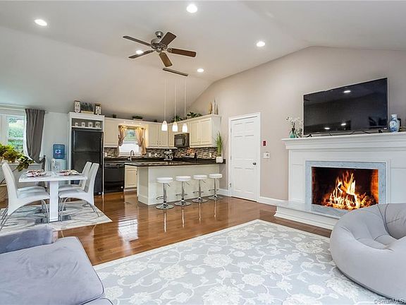 Welcome to this Move-In ready, sun filled 4 Bed Ranch on the New Fairfield/Danbury border. Located in a quiet neighborhood with seasonal lake views. The open layout of this home is ideal for comfortable living and entertaining. The chef in you will enjoy cooking in the beautiful Eat-in Kitchen featuring granite countertops, a breakfast bar, dining area and Whirlpool appliances. The kitchen opens to the living room with vaulted ceiling & Fireplace featuring a tile surround and beautiful mantle. Open the slider doors and extend your living space to the great outdoors. Enjoy grilling out with friends, dining al-fresco and gazing at the stars on your oversized deck while overlooking the serenity of the large fenced backyard. In winter months enjoy the peaceful lake views beyond. The Master bedroom with attached full bath & another bedroom complete the main level. The walkout lower level offers a family room with sliders, two additional large bedrooms, another full bath and laundry room all with tile floors. This space is perfect for extended family or guests and even has its own separate French door entrance off the patio. Meticulously maintained, hardwood floors, security system and Central Air too! 2 Car spacious garage with main level entry. Easy commuting location with close-by access to RT 39, 684 & RT 22. Great schools. Don't Miss This Opportunity ... It Won't Last Long!