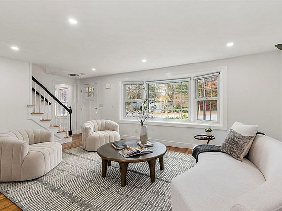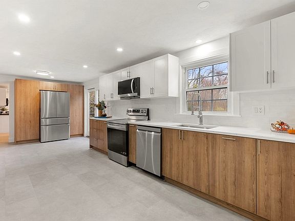 Newly updated and located on a private 1.43 acre lot abutting Conservation land. This beautiful Colonial offers the perfect blend of modern amenities. The home boasts four spacious bedrooms and three full bathrooms, including a versatile layout with an option for a first-floor master suite, in-law suite, or home office.The recently refinished hardwood floors flow seamlessly through the freshly painted interior, leading to a brand-new kitchen with custom cabinetry and new appliances. A finished walk out lower level with new carpet provides additional living space, ideal for exercise or playroom. Outside, the freshly painted back deck overlooks the tranquil, wooded landscape, while the new garage doors & French drain and newer roof ensure peace of mind. Modern conveniences include a new HVAC system with AC compressor for main house, 2 new separate hot water tanks. Very close to the highly rated high school. Enjoy access to town pool, tennis/pickleball and basket ball court.