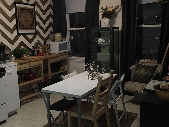 Newly renovated one bedroom in apartment complex. Eat-in kitchen with new appliances, hardwood flooring with high ceilings. Laundry in building. Public transportation is easily accessible.