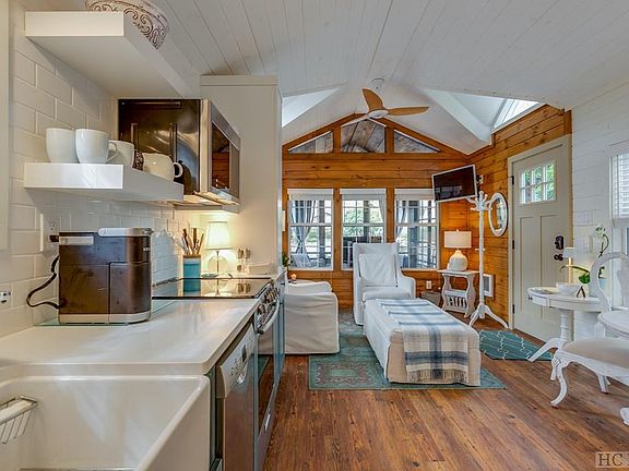 In-town Highlands tiny home ready for you to move in and Enjoy! A short stroll to Main Street's restaurants and shopping. This park model home was totally renovated. The tiny home features beautiful and tough Bamboo flooring, new metal roof (gutters added), encapsulated crawl space and high end furnishings throughout. The kitchen has a farm sink and quartz counter top, refrigerator & range are new and especially designed for small spaces. The totally new bathroom is stunning with heated floors that engage when you walk in, a beautiful multi head walk-in shower and all new fixtures. Spend your evenings on the covered front porch enjoying your favorite tv show or visiting with friends. The furniture is all top end and especially chosen to fit in the space, including Polywood outdoor furniture,Behind the tiny home is a small yard that can be converted to a garden space but is also currently a cozy sitting area with a portable fire pit that is also a grill. Don't miss this great opportunity to own an in-town Highlands jewel1