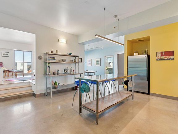 Inside, you'll find a light-filled, open-concept layout with soaring ceilings, polished concrete floors, and oversized windows that showcase picturesque views of Munjoy Hill and Back Cove. The expansive living area is ideal for hosting intimate dinner parties or enjoying quiet evenings at home, all framed by a sleek, urban aesthetic that defines modern loft living.