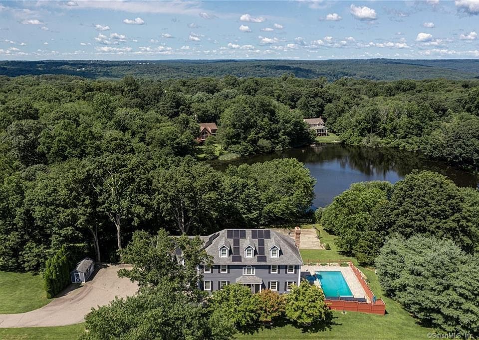 A rare opportunity to own a premier property with waterfront access to Ajello’s Pond on Great Hill in Seymour nestled upon a private and perfectly placed serene setting. The outdoor amenities for this property are impressive with outdoor decks screened & open, a lower level veranda, salt water Gunite pool & hot tub, container bed gardens, basketball court & direct waterfront pond access. The home features an energy independent 1 year old, homeowner owned Sun-Solar system with dual wall-battery for nighttime storage. Unlike leased and PPA systems, you own and produce nearly all your own electricity needs throughout the year including summer cooling and winter heat pump with possible net metering of power back to the utility. There is a full in-law, assist-free access level open floor plan with a dining and living area that opens to a veranda & pool area. It is complete with an elevator from lower to main level, easy access bath and full kitchen and an additional powered lift in the garage for a wheelchair/scooter for those in need of access to the both the lower and main level. The home contains 5700 sf of finished living space, 4/5 BR’s, 3.5 BA, Hardwood flooring throughout with additional large rooms with options to fit your needs: Game room, Home Business, Studio or Theater room, Main level Family room, Dining room with crown moldings! Lots of room to relax ,garden, fantastic for pets too. Easy commute to NYC. Close to state and town parks with lots of nature trails HVAC systems are heat pumps which provide both cooling and heating. The oil fired boiler provides hot water and supplemental heating in the event that the heat pump is required to operate during periods of extreme cold weather. Oil usage per the homeowner is minimal. Solar was sized to accommodate electric vehicle charging. If buyer does not have electric vehicles, electricity utility costs should be near zero. Battery walls can provide required powered at night and then recharge during the day.