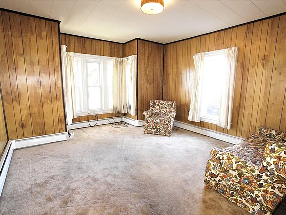 Spacious four bed room home with fenced yard and detached two car garage. Featuring living room, dning room, big kitchen, bed room, pantry-closet, full bath, laundry room and enclosed porch on first floor and three bed rooms and full bath upsatirs. Easy care vinyl siding and windows, updated boiler and electric entrance, paved drive, fenced back yard, big storage room above garage, walking distance to main street etc.