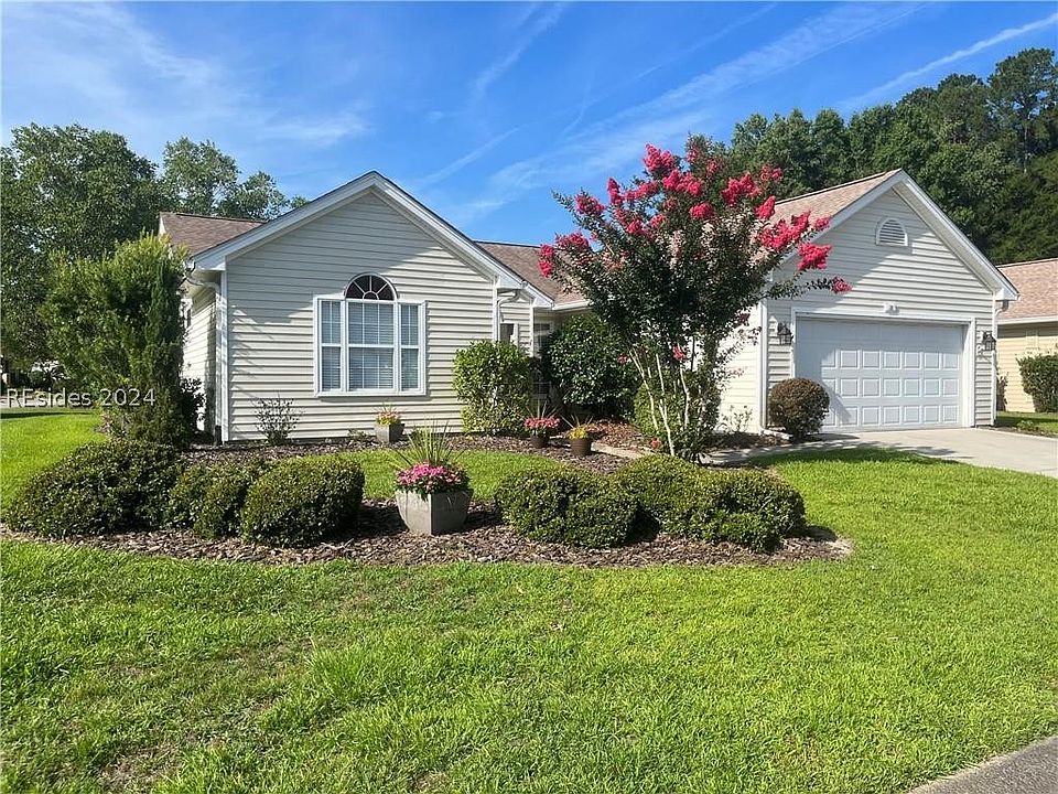UPDATES GALORE! Light & bright Ham/Jefferson model in Sun City HH. Brand NEW LVP flooring & baseboards in LR, kitchen, den/office, & hallways! Both bathrooms have been updated w/ beautiful vanities, sinks, medicine cabinets & mirrors. New travertine stone flooring & AC unit in the Carolina Room. Four sliding glass doors in Car Rm plus 11 window panels replaced throughout. New fire door between kit & garage. Entire home & garage freshly painted including closets. New awning canopy. Added to this home is a wonderful light & bright bonus room located off the primary bdrm that can be used as an office, craft/sewing room, art studio or storage rm.