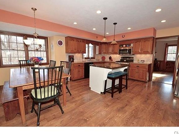 Beautiful center hall colonial on a picturesque, quiet cul-de-sac. First floor includes a formal living room, formal dining room, spacious gourmet kitchen with stainless appliances that flows into family room with fireplace. Convenient laundry/mudroom, new 1/2 bath and a 3 season sunroom complete the first floor. Upstairs includes a large master suite with new bath, plus 3 generous size bedrooms and new full bath. Lower level is partially finished with a workout/rec room. Hardwood floors throughout, including hardwood under carpet on the 2nd floor. Home is on a level private, wooded acre lot. Includes 2 car attached garage with storage above. THIS HOME HAS IT ALL!