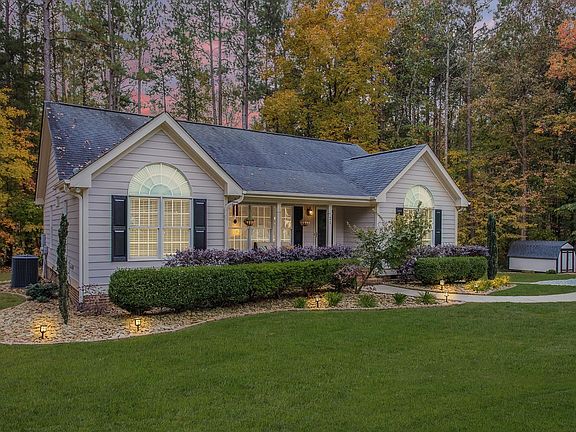 This adorable, well-maintained 3BR/2BA ranch home sits on over an acre corner lot in an absolute hidden-gem of a neighborhood. Upon entering the home you'll want to take a moment to bask in the natural light that floods every room. Kick your feet up and relax in the spacious living room that features hardwood floors, vaulted ceilings, a fireplace, and built in bookshelves. The kitchen offers an abundance of storage w/ ceiling-height cabinetry as well as stainless steel appliances. The split floor plan and roomy bedrooms allow for both privacy and convenience. Enjoy the sights & sounds of nature from the large back deck or front patio. Take note of the brand new carpet in one of the bedrooms, storage shed, and new gravel in the driveway. This home is turn-key and ready for you to move in and make it your very own home sweet home. Convenient to both Durham and Hillsborough.