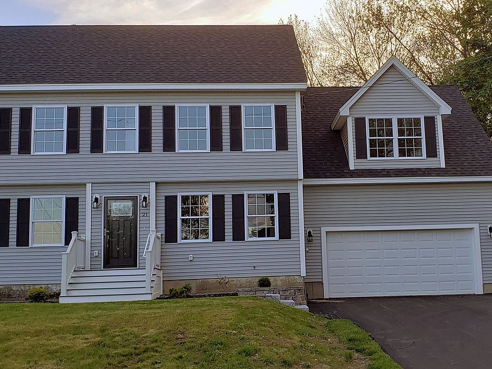 21 CONSTANCE STREET, BEDFORD, NH. In desirable Bedford, New Hampshire, this home combines a suburban neighborhood setting with the convenience of nearby highway access, shopping, and city amenities. This home boasts four (4) bedrooms and 2.5 baths, hardwood floors, and granite countertops. Spacious master suite with a sitting area and a private, full bath with double vanity and plenty of storage space. Three other large bedrooms and another full bathroom complete the second floor living space. An insulated walk-up attic with tons of possibilities rounds out the interior of this deceptively large home. Additional features include a two (2) car attached garage, full basement, natural gas-fired forced hot air heating system, central A/C, public water, and public sewage on a low-maintenance lot. This amazing, home has it all and won’t last! Broker interest.