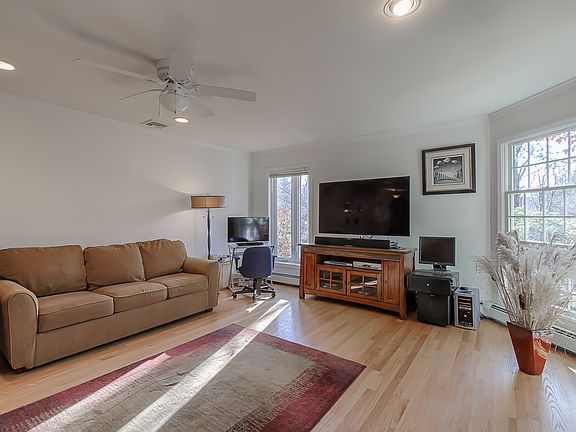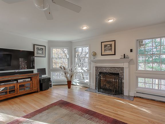 Warm, Welcoming Stately Colonial! Private property nestled within lovely neighborhood. Numerous updates throughout the home. Radiant Family Room w/ gas fireplace & wall of windows overlooking woods. Renovated eat-in-kitchen boasts center island, granite counters, stainless appliances & slider to stunning back deck. Magnificent first floor layout includes Formal Living & Dining, Office (5th Bdrm), Laundry, Powder Room & Posh Foyer. Solid wood & glass front door, french doors, beautiful hardwood flooring are just a few features that make this a standout home. Master Suite offers additional closet space & balcony with newer bath. The walkout basement is a perfect recreation room & more unfinished space for storage. Newly landscaped side yard for play. Plus deck, patio & fire pit. Great yard, low maintenance.