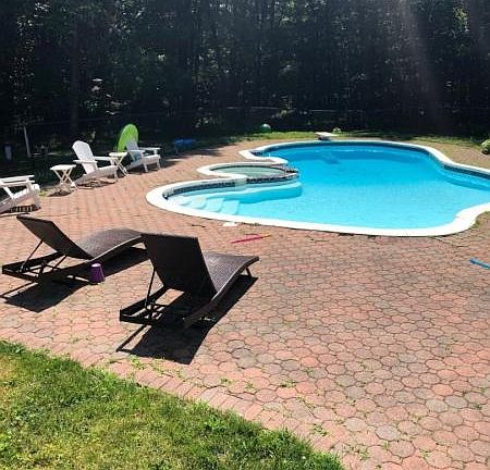 Spacious and updated! EIK w/stainless appliances, granite counter-tops and custom cabinets. Sliders off dining room open to 18x12 3 seasons rm overlooking private park like rear yard w/IN-GROUND pool & paver patio. Master suite offers walk-in closet and access to updated full bath with soaking tub. Beautiful hardwood floors. Vaulted ceilings. Lots of upgrades throughout. Lower level features family room w/ wood burning stove, den, full bath and laundry rm. CAC, new well pump and holding tank. 2 car garage and storage shed all situated on 2 acres.