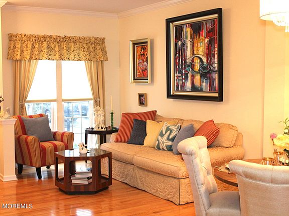 Discover a hidden gem nestled in the heart of the Jersey Shore. The Shores of Long Branch is situated on a cul-de-sac and embodies the essence of summer living, where every moment promises relaxation and enjoyment. Moments away (2 blocks) from pristine beaches, close to boardwalks, Pier Village and an array of shore eateries. Step inside to find a home adorned with elegant decorator paint, refined crown moldings, Hunter Douglas two-direction shades and gleaming hardwood floors. The kitchen is a culinary delight, featuring stainless steel appliances, sleek Corian countertops, pantry and a cozy eat-in area where family and friends can gather. Step outside the sliding glass doors to discover a spacious deck ideal for dining and reading. Primary bedroom with en suite and walk in closet quaint tree lined yard. A gas fireplace adds warmth and ambiance to the inviting living space, perfect for cozy evenings indoors. The convenience of a second-floor laundry room adds practicality to daily living. The finished basement offers ample living space, complete with a full bath and storage area. The HVAC system ensures climate control throughout the seasons, while a water pressure-powered backup sump pump provides peace of mind during inclement weather. New hot water heater installed recently. This townhome invites you to embrace the quintessential Jersey Shore lifestyle of leisure, relaxation, and endless summer memories.