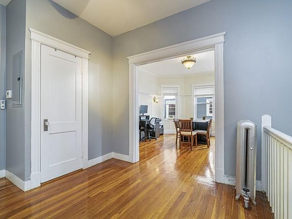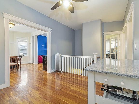 Don't miss your opportunity to rent this one-of-a-kind, stunning 4 bedroom/2 bath condo with a beautifully remodeled kitchen and large foyer. Spacious, bright & sunny with turn-of-the-century construction, plus modern updates including granite counters, kitchen island, in-unit laundry, refinished wood floors, custom lighting, and more. Open floorplan and high ceilings make this unit feel even larger than it is... perfect for entertaining! Private back deck off the kitchen and a charming shared back yard, plus dedicated storage in the basement. Space for three cars- one garage space plus 2 tandem driveway spaces! Two new Silverline stops are both 1/3 mile away, the Wood Island T stop (Blue line) is 1 mile away and bustling Bellingham Square is .2 mile away. Must see! Just in time to enjoy the yard!