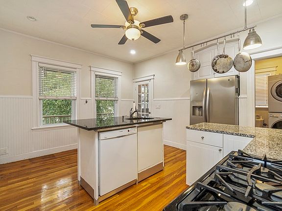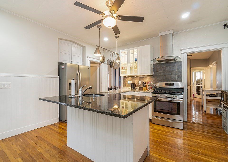 Don't miss your opportunity to own this one-of-a-kind, stunning 3-4 bedroom/2 bath condo with a beautifully remodeled kitchen and large foyer. Spacious, bright & sunny with turn-of-the-century construction, plus modern updates including granite counters, kitchen island, in-unit laundry, refinished wood floors, custom lighting, and more. Open floorplan and high ceilings make this unit feel even larger than it is. Private back deck off the kitchen and a charming shared back yard, plus dedicated storage in the basement. Space for three cars- one garage space plus 2 tandem driveway spaces! Plus a brand new roof! Two new Silverline stops are both 1/3 mile away, the Wood Island T stop (Blue line) is 1 mile away and bustling Bellingham Square is .2 mile away. Must see! Just in time to enjoy the yard!