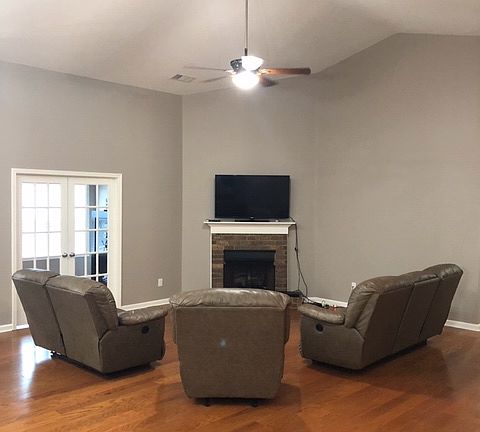 Beautiful Ranch with rocking chair front porch. Inside you will find a large open floor plan with hardwood floors, 4 bedrooms, office/sitting room, tiled bath rooms and new light fixtures. Fresh paint on the interior and exterior.