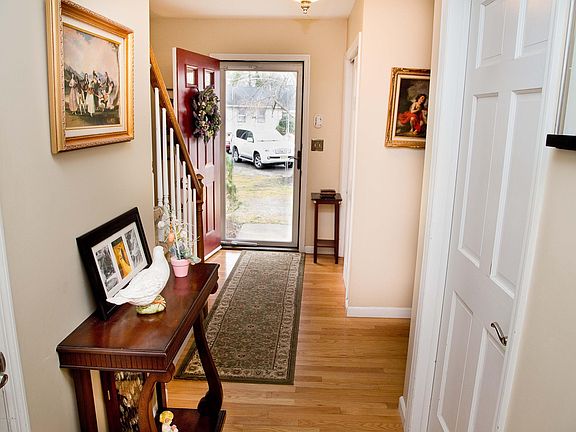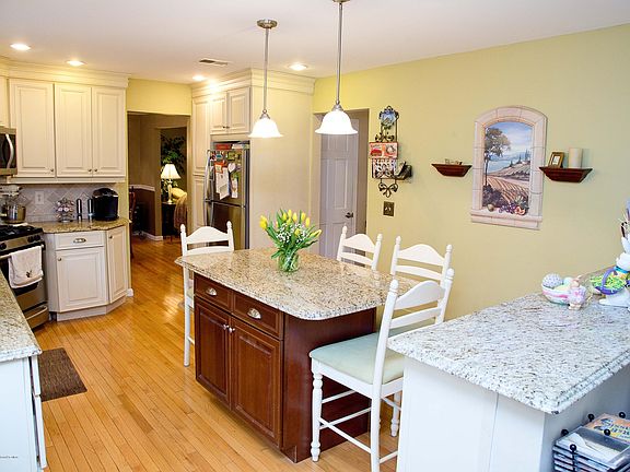 Prime Cul-De-Sac Location is where you will find this updated 3 BR,2.5 Bath Colonial with a Charming Rocking Chair Porch. Newer kitchen featuring Hardwood Floors, Granite Counters, Center Island, Recessed Lighting, Marble Back Splash and Custom Kitchen King Cabinets with slow close drawers. Family Room with Decorative Molding,Skylight and Wood Burning Stove. Formal Living Room and Dining Room with Decorative Molding, Hardwood Floors and Beautiful Picture Window. Master Suite with Hardwood Floors, His and Her closets and Private bath featuring Custom Vanity with Granite Counter top and New Full Tile Shower. The Main Bath features a Granite Vanity,Full Tiled Tub and Shower combination. Large Deck off Kitchen and Private Park Like Property backing to Green Acres completes this Home.