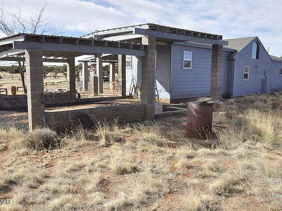 not far of county maintain Old Hunt Rd (5270) for easy access. Live sustainably on this off grid (solar) property, w/private well into the Coconino Aquifer (well reg # 55-547148) which provides good, abundant, water. Wood burning stove keeps home toasty warm during winter, along w/propane wall heaters. Fenced in dog run, w/access into home. Fenced garden area, along with goat (or?) pen. Detached 2 car garage as well as 2 carports. Homes interior recently.painted. New 3000 gal water holding tank & 2 new lithium solar batteries (not yet