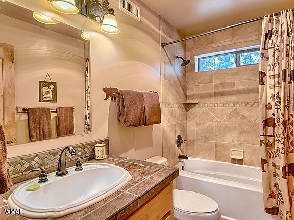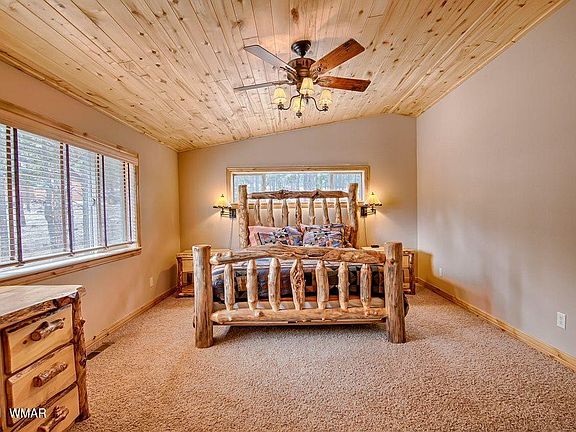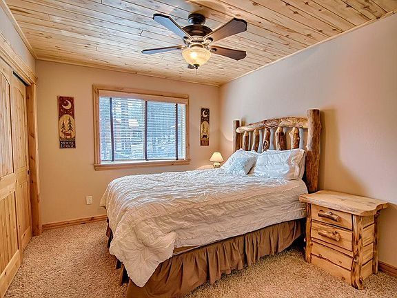 Tri level cabin located in quiet area with tall pines and vistas across the valley. Private large master bedroom/bathroom on upper level with private balcony. Large decks with vistas and a rec room on lower level. Plenty of extras including back up generator and exterior fire suppression hose. Two car garage for all of your mountain toys. Can be used as nightly rental.