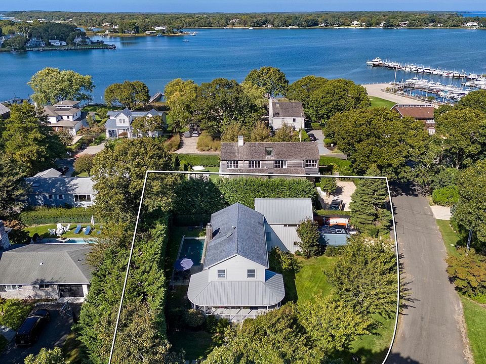 Located in the coveted Redwood waterfront community of Sag Harbor Village, this architect-designed, Victorian-style home presents a striking, modern interior. Completely renovated and expanded with 2 primary bedroom suites, the 4-bedroom, 3.5-bath residence showcases luxurious updates alongside captivating harbor views. Set just two blocks from Sag Harbor's vibrant Main Street, this 3,000 +/- sq. ft. house exudes classic Hamptons allure with its inviting wrap-around porch, mahogany and stone patios, high-end finishes, and impeccable attention to detail. With an open concept design, the main level encompasses a sitting area centered around a fireplace, dining area, and exquisite kitchen with island seating. Set on the second floor, two guest bedrooms and bath plus the expansive primary suite includes a spacious bathroom and private balcony. The second primary suite with exceptional bath is accessed separately also on the second floor. The finished 9 foot ceiling lower level enhances the home's versatility with an additional 500sf +/- great room featuring a lounge alongside a gym area and a pool/ping-pong table. This multi-use space offers endless entertainment options, perfect for unwinding after a day on the water. Outside, a heated gunite pool neighbors patio space perfect for dining al fresco. Additional amenities include an attached garage, outdoor shower and convenient boat mooring and water access directly across the street. Within close proximity to both ocean and bay beaches, this chic retreat promises an idyllic blend of village convenience and waterfront tranquility.