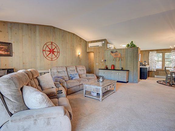 This condo has most everything you need in a perfect White Mountains retreat! A small condo association just three blocks from the heart of North Conway Village, with a private pool and seasonal views of Cranmore Mountain. The condo has been renovated in a most tasteful manner that is both modern and bright, but has the nuanced retro feel reminiscent of the date of construction. New flooring in the basement brings a polished aspect to the space and fresh paint adorns the walls of each of the three large bedrooms. The full bath has undergone some upgrades and feels crisp and fresh. Upstairs a soft carpet welcomes your feet and complements the open living area with a high ceiling, wood clad walls, and a large hearth and fireplace. Light and fresh air gently float into this room from two large sliders off the deck. The dining and kitchen area are convenient and have undergone transformations of their own with new hardware and sleek, modern appliances. Just around the corner, and neatly tucked away, is ample closet space and a half bath for convenience. Condos in this area are a rarity at this price, and the quality of the work performed is sure to please.