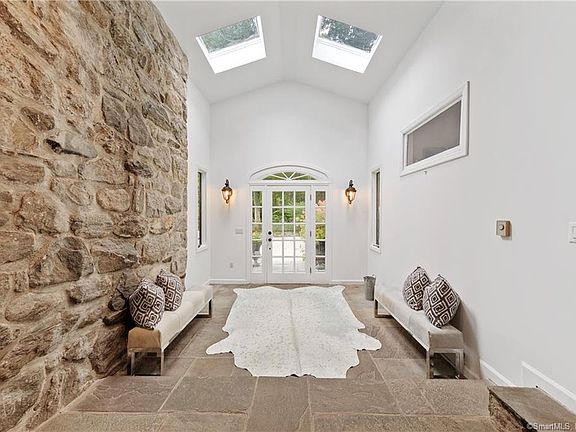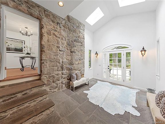 Classically modern stone and wood home set in a conveniently private location on idyllic grounds. A gracious foyer with 12+ foot ceilings and interior stone wall gives way to the seamless flow and perfectly proportional living spaces. In addition to mature landscaped gardens and lush lawn, outdoor spaces include an expansive deck overlooking the pool and tennis court. Indoor spaces feature an oversized living room and dramatic dining room that are perfect for entertaining, while the gourmet chef's kitchen offers a fireplace, sunlit breakfast area, and oversized island. The floor plan of the living spaces provides the utmost flexibility for every lifestyle. The primary bedroom is a sanctuary that boasts a new luxurious bath and two walk-in closets. Four additional bedrooms, two and a half baths and sitting area offer privacy and downtime for everyone in the main house. An attached legal in-law suite with full bath, laundry, and separate entrance complete this special home. Two basement storage areas, electric car charging station and generator are impactful conveniences for modern living. Minutes to shopping, dining, and all town amenities, this peaceful property is one-of a kind.