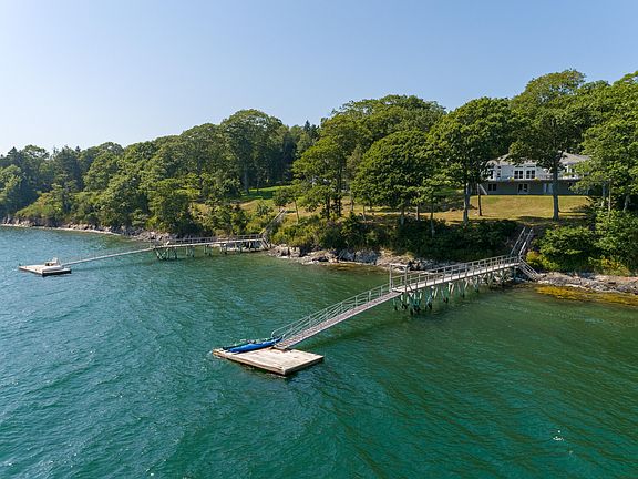 Harpswell Waterfront at its best! Sunny, secluded waterfront with 2+ Acres on beautiful Harpswell Sound! A house full of character, from its 10ft ceilings to its rich polished floors.This stunning ranch home feels like new. Designed for low maintenance and easy first floor level living. A grand primary suite will draw you out on the deck to capture the incredible sunrises. Or spoil yourself in the in the deep oversize soaking tub... The spectacular long views from the 62 ft long deck., showcases picture perfect views of the historical Cribstone Bridge. Relaxing in front of the grand stone fireplace, your eyes are torn by the fire, and the ocean. .A large cook's kitchen with breakfast area and custom island. Sliding doors lead to an oversize deck area, perfect for entertaining. Find yourself gazing over the dock and your boat gently rocking on the morning. A huge daylight basement, a large double lot and so much space over the garage, offers so many possibilities that are hard to come by on the oceans edge! No Drive Byes, Private Road