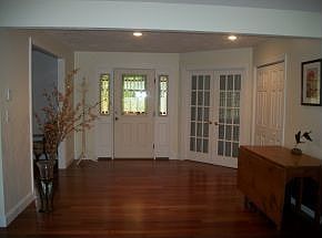 Executive Ranch on five private acres. Interior features extra large master suite with french doors and massive walk in closet, brazzilan cherry and tile floors, open concept with vaulted ceilings, stainless steel appliances, double sliders overlooking backyard, and breakfast nook. Outside features farmers porch, plus another covered porch with ceiling fan, large sunny deck, and hot tub area. Extra large walk out basement, radiant heat in the floors, double oil tanks. House sits back off road for extra privacy. Seller is a licensed agent.