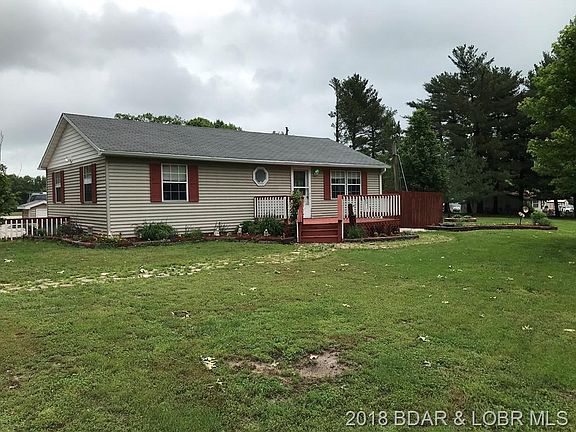 Stick Built 3 Bedroom with new carpet on flat acres. Living, Dining and Kitchen are open with adjoining bath and 3 bedrooms and utility. Additions in last few years have been 400' deep well, septic, and wood burning outside furnace with own duct work for inexpensive heat or power outages. Fenced in for pets and kids. 2 Car detached garage with additional storage/ hobby room. 30' X 40' Pole Barn with concrete floor, electric and extra 30 AMP breaker for Camper, etc. Hog pen with panels stay, room for other livestock as well, use your imagination. Lots of additional parking, pond, fruit trees, and children's play equipment add to this great property. Close to boat launch and recreational areas as well as Camdenton and Osage Beach with black top roads all the way. Only 2 homes on this road so no traffic. Not a drive by and very worth the look. REDUCED $10,000. Owner say Make Offer.