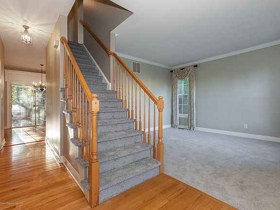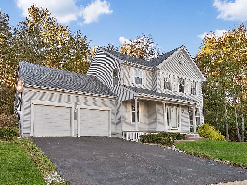 End of cul de sac location in most desirable Monmouth Ridings sub division sits this 3 bedroom Colonial with a full Poured Concrete basement in a private setting backing up to woods. Stainless Steel Appliance package in Kitchen , wood flooring in family room with fireplace, New Carpeting thru out, 2 teir Deck for entertaining with outdoor bar. 3 Generous sized bedrooms on second floor with a Master Bath with large Soaking tub. Roof Replaced 2015 AC and Heat newer, Generac Whole house 8KW generator included.!Home has large front porch, sits high, no sump pump needed.