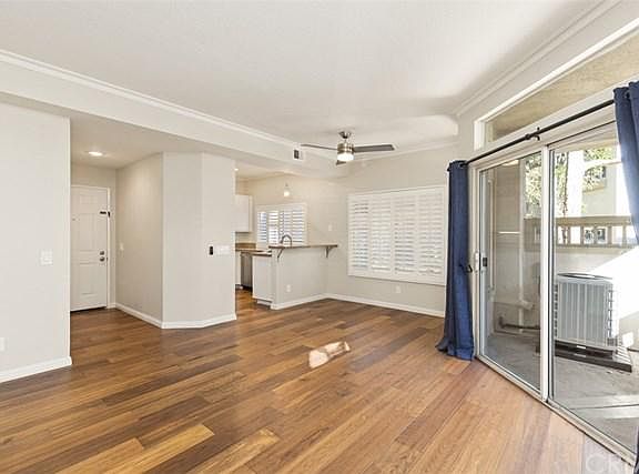 Investors Dream, Fully vetted tenant paying market value for 2 years. This updated single level condo in popular Palm Court of Laguna Niguel is truly remarkable. Gorgeous wood flooring throughout, that's right...no carpet and no stairs! Updated kitchen with granite countertops, newer stainless steel refrigerator, gas cooktop. This end unit location is a close walk to the community pool and looks out onto green belts. The abundant windows bring in natural light making this a cheery but warm home. The open floorplan offers a large dining room/living room combo and an enclosed outside patio off the living room. The master bedroom offers a ceiling fan, large closet, and en-suite bathroom with a separate vanity area and shower. The guest bedroom has a ceiling fan and is across from the guest bathroom which is remodeled with a new vanity. The hall offers a laundry area and extra storage closet. Enjoy the direct garage access to the 1 car garage. This home has air conditioning and the plumbing is new with pex piping. The Palm Court community offers two pools, spas, tennis courts, a tot lot and it is a close walk to the Salt Creek Trail leading to Salt Creek Beach. Enjoy this amazing location surrounded by hills, shops, restaurants nearby, and easy access to the Dana Point Harbor and the 5 Freeway.