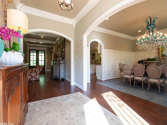 Elegant features & details thruout this amazing family home in gated Chenal s/d. Awesome split floor plan features HDWD floors, tall wainscot & stunning crystal chandelier in DR, coffered ceilings & FP in Great Rm, office area off laundry, 2 bdrms share lrg bath. Guest suite. Gorgeous kitchen w/vaulted ceilings, slab granite island, ss appl, & hearth rm. Large Mstr suite w/soaking tub in bath. Bonus room, bath, storage closet & attic access up. Covered back porch living area w/FP. 3 car side gar. Come See!