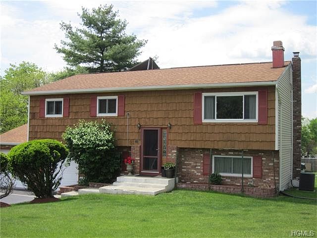 A commuters delight this solid 4 bedroom two bath home in sought of Washingtonville. Three bedrooms upstairs with one currently used as office, jack and Jill bath adds convenience for the larger bedroom dweller. Newer eat in kitchen was installed 2010 with granite tops and new appliances that is open to the dinning, living room area which has a wood burning fireplace. All hardwood upstairs keeps the home clean and free of allergens. The lower level boasts a large family room with a wood stove, a full bathroom and large bedroom which is great for guests. Included is the laundry and mechanical room. Separate solar panels on rooftop power the hot water heater which are owned and panels for electric which are leased keep the electric bills at $115.00 a month. Taxes are noted without the STAR reduction of $946 per year. A little vision will tell you this oversized home is a bargain. Take a look and you will agree.