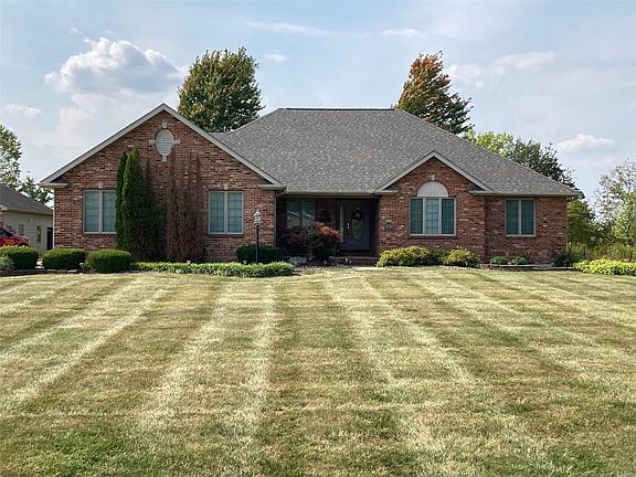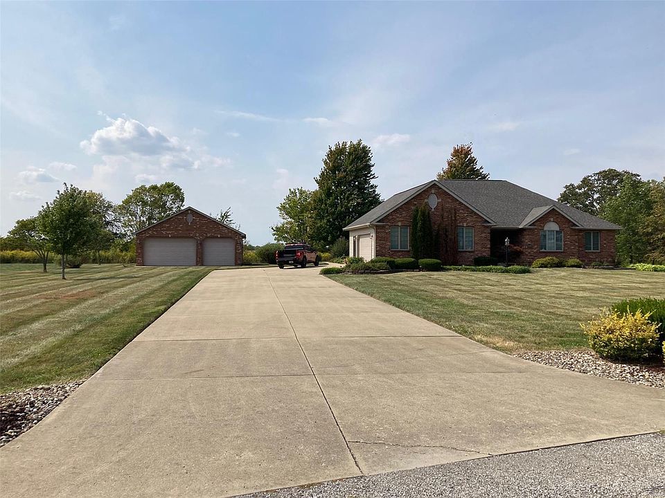 This one has it all. Custom ranch on 2 acres with pond in the Highland School District. Stepping inside you will notice the high-end wood flooring in the entrance foyer that opens to the spacious living room with gas fireplace. Chef inspired kitchen features an abundance of cabinets, solid surface countertops and a walk-in pantry. French doors from the bay eating area leads to patio overlooking the private backyard. Enjoy tranquil views of the pond from the primary bedroom. On-suite features luxury jetted tub, separate shower & large walk-in closet. Relish hosting gatherings in the thoughtfully designed lower-level featuring family room with surround sound, full bath, gym room and recreation area with wet bar. The toy and car enthusiast will appreciate the Spectacular 32' x 40' detached Garage with 3 overhead doors with endless possibilities. Embrace this lifestyle in this country neighborhood. Open House from 1-3 pm on 1/13/2024. All offers will be reviewed on 1/15/2024 at 5 pm