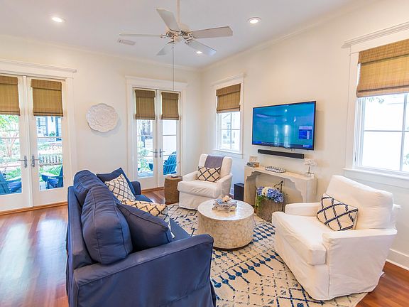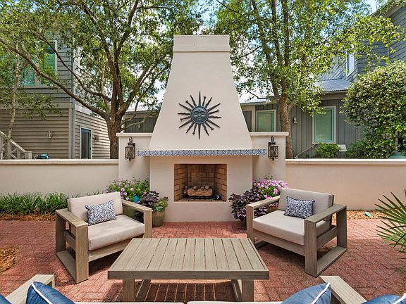 Nestled within the enchanting enclave of Rosemary Beach, 21 Dill Lane features a Cottage and Carriage House along with unrivaled opportunity for luxurious coastal living. This exceptional residence features 4 spacious bedrooms, a versatile bunk room, and 5 full bathrooms, providing abundant space for both family and guests.Upon entering, you'll be captivated by the impeccable interior design, where modern elegance seamlessly merges with the coastal charm that defines Rosemary Beach. The home is thoughtfully furnished and adorned, reflecting a commitment to luxury living that exudes sophistication and relaxation.One of the home's outstanding features is the enchanting courtyard, complete with a stucco fireplace--a place where you can envision cozy evenings spent gather around the fire, sharing stories and creating cherished memories. Whether you seek solitude or an inviting space for entertaining, this courtyard offers the perfect backdrop.
