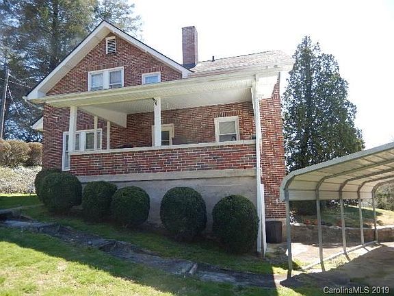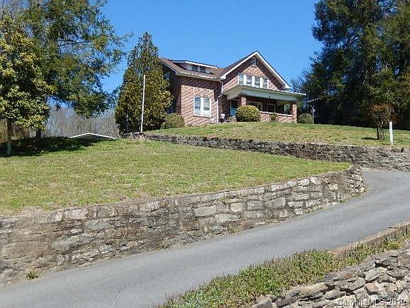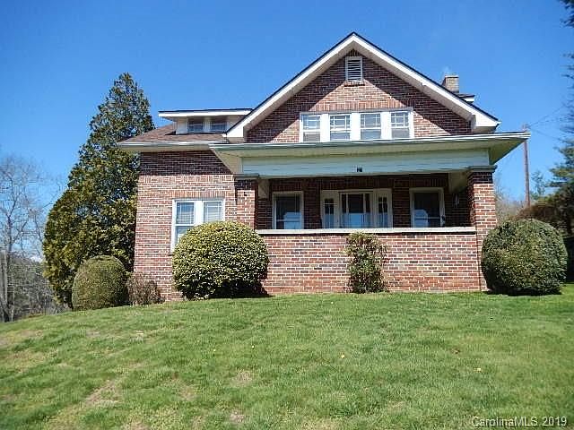 Huge views overlooking downtown Marshall and the French Broad River off Skyway Drive, this lovely Sixites period-piece brick home has covered front and back porches and may want some updating of kitchen and baths but the woodwork and built-ins are exceptional. Wall-to-wall carpeting downstairs covers beautiful hardwood floors.