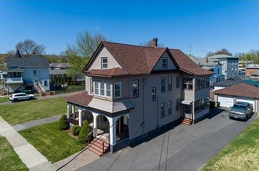 If you are looking for a well maintained investment property with a strong rental history or if you want help with your mortgage this is a great opportunity! This well maintained Vinyl Sided 2-family home with a wraparound porch, 2 enclosed porches, storage shed, patio, fenced in back yard, detached 2 car garage and plenty of off street parking. Lots of recent updates and improvements include siding, replacement windows & roof (within the past 10 years), new hot water heaters less than 2 years old. Lots of beautiful natural wood work and wood floors through out. The first floor offers formal living and dining rooms, nice sized kitchen with large panty, 2 bedrooms and a full bath. The second floor offers a remodeled kitchen, dining room with built in hutch that is open to the living room, bright and cheery office space, 2 bedrooms and a full bath. The basement is a common area and has access to washer and dryer hookups. Full walk up attic for additional storage space.