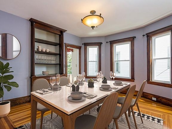 Move-in ready two-bedroom residence on the second floor of a three-family located on a pleasant side street in North Cambridge. Bay windows in the spacious living and dining rooms. Larger kitchen with ample cabinets and French doors opening onto a covered rear deck. Two generous bedrooms and luxurious renovated full bathroom with heated floor. Front entry hall leads to inviting recently rebuilt front porch, ideal for summer nights. Highlights of this home include newer heating system (2017); in-unit laundry; 8'7" ceiling height; ceiling fans; replacement windows; private basement storage. Walk Score® 92 - "Walker's Paradise." Enjoy easy access to Davis Square (.5 mile) and Porter Square (.8 mile) and the Bike Path. Delightful city park at the end of the block.