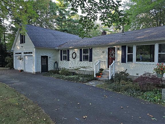 This home is perfectly prepared to keep you warm and cozy during cool fall evenings and winter snowstorms! Park your car in the oversized garage and light a fire in the gorgeous Soapstone Woodstove (professionally installed in 2010) Seller will include approximately 2 cords of Kiln dried firewood with sale. Power out? Bring your portable generator, a transfer switch is already installed for your convenience. Bake warm chocolate chip cookies in your brand-new stainless-steel range with matching fridge and DW in the cherry and marble kitchen. This home features hardwood flooring, and fresh interior paint. Large primary suite (built 2003) with vaulted ceilings has double doors that open onto the back deck, Natural Maple floors, private bath with 5-foot-wide walk-in shower and WOWWIE Dream Walk-In Closet. One floor living includes additional two bedrooms with brand new carpet and a full bath. Plenty of space for everyone to spread out: Family room (16 x 16), Livingroom (12 x 18), covered porch (12 x 10). Amazing storage space! The huge unfinished basement has high ceilings and walks straight out to the back yard. Lots of expansion possibilities (with town approval) add finished space in the lower level, or build a home gym, playroom or man cave in the 24 x 24 walk up room over the garage. Home designed for easy mobility and has a wheelchair elevator in the garage (see disclosures). New Boiler in Sept 2016. Nothing to do but move in!