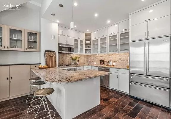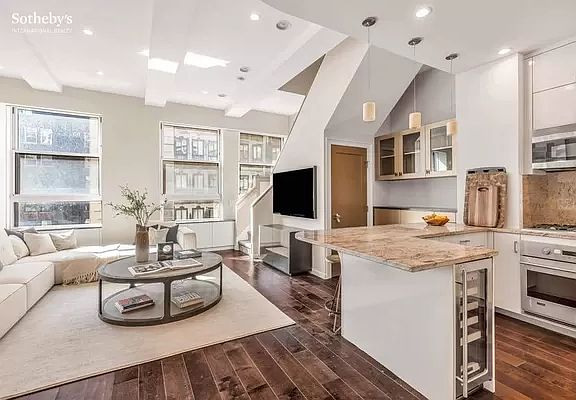 Welcome to this spectacular Flatiron duplex 3-4 bedroom, 3 bathroom home with sunny South facing exposures. No detail has been overlooked in this stunning renovation. The prewar loft like apartment spans two floors featuring 10'8" high ceilings. Originally 3 apartments, the space has been renovated and smartly redesigned with style and high quality details that allow for lots of different uses and creates an expansive and gracious living environment. Currently set up as a 3 bedroom home with a media room, open concept living/dining/kitchen and a huge walk-in dressing room. Upon entering on the lower level, you are welcomed by a sun splashed loft style open concept living space which includes, living, dining and a chef's kitchen. Extra large South facing double city windows bathe the space with direct sunlight and provide a pin drop quiet sanctuary. The renovated open kitchen has a breakfast bar with granite countertops and backsplash, top-of-the-line stainless steel appliances including a wine fridge, tons of storage and a sidebar perfect for a minibar/pantry. Additional features on this level include a full contemporary bathroom (currently set up as a powder room), 3 large storage closets and dark hardwood floors throughout. Access the upper floor through a well-designed and stylish staircase. The soundproofed super quiet upper level includes 2 very large bedrooms, a media room/office/sleeping area, a custom designed full bath with conveniently located upstairs washer/dryer and the Primary Suite. This thoughtfully designed private retreat includes custom finishes that most high-end hotels would be envious of with a spa like bath with heated floors, custom tiles, plumbing fittings and double sinks. This private sanctuary includes an office area and an enormous dressing room fit for Carrie on "Sex in the City". Additional Highlights include: wide plank dark wood floors throughout, Custom Lighting, Lutron Home Control System, Multizone Central AC & Humidity Control, Mechanical Shades and fully set for internet/cable/sound. Experience beautiful architecture and one of Manhattan's most convenient locations with every major subway and amenity at your doorstep. Building amenities include a full-time attended lobby, a live-in resident manager, new laundry facilities on every floor, storage bins, bike storage and a furnished roof deck with dramatic views. 21 East 22nd Street is a well-run, financially sound co-op with low monthly maintenance. The building allows for pieds-a-terre, guarantors and pets. The lobby has undergone a recent renovation and looks beautiful. Up to 75% Finance is OK. No Flip Tax. Assessment through 12/21.