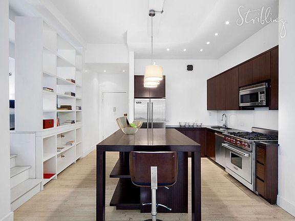 This tastefully renovated 1-bedroom (convertible 2-bedroom) Loft residence in an attractive Pre-War building on a beautiful tree-lined street in the heart of Flatiron, features a dramatic Great Room with over 11ft high beamed ceilings, hardwood floors, new windows and double exposures that grace the space with abundant light throughout the day. Open to the Great Room is the beautifully renovated Gourmet Kitchen with granite counter-tops and top-of-the-line stainless steel appliances including a Viking refrigerator, 6-burner Wolf stove, Dacor microwave, Bosch dishwasher and a wine refrigerator. The center island in the kitchen includes a cleverly designed & customized movable table that perfectly fits above the counter or can be moved to create a large dining space, allowing for flexibility of use. Up a few steps from the main living space is the loft bedroom with east-facing windows looking onto planted terraces of the neighboring townhouse and building. A sleekly renovated bathroom features a Zuma soaking tub, Rain Shower Head and Duravit toilet.