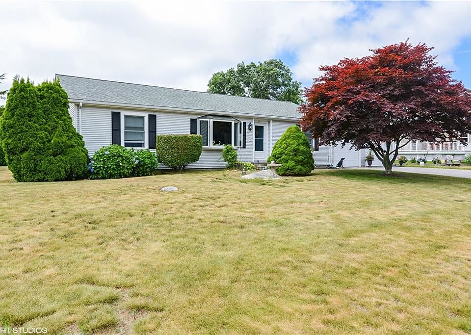 If location is important to you, then this two bedroom, two bath, and two car garage ranch- style house is perfect for you! Situated on a quiet cul-de-sac, the house is across the street from the 10th fairway of the Winnipaug Golf Club and a short walk to the salt pond. One can enjoy the cool sea breezes and the sound of the surf at night. This house offers an open floor plan, a modern kitchen with custom made cabinets, granite counter tops and all new appliances. The master bathroom has a full bathroom newly remodeled with stone tile and a granite counter top. Two large closets are also available for storage. The guest bedroom with large closet is across the hall from the remodeled second bathroom also done with tile and a granite counter top. A bonus room is available for a home office or additional sleeping quarters. There is a full deck on the back of the house complete with a screened in porch with custom woodwork from refurbished barn boards from Vermont. The opposite end of the back yard is where the enclosed outdoor shower can be used to wash off all the sand brought home from the days on the beach.