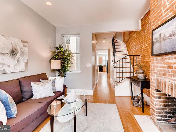 Four levels of WOW in the heart of Federal Hill! If you're looking for something that checks ALL the boxes AND offers as much (if not more) natural light than most end of group houses in the area, look no further. Once inside this brick-front townhouse, the awesome fireplace, charming exposed brick and stunning hardwood floors welcome you into a property that is sure to please. The first floor offers separate living and dining rooms, access to the lower level clubroom, a well-appointed kitchen complete with breakfast bar and access to the rear parking pad. The second level touts two great sized bedrooms with equally great closets, easy laundry access, an awesome brick and tiled bath complete with pocket door and wrought iron accents to complement the space. The third level boasts the master suite, offering a large spa-like bath complete with separate tub and shower, dual vanities and more. The bedroom offers his and hers lighted closets, vaulted ceilings and built-in accents to name a few amenities. This level also gives hallway access to one of the best rooftop deck views in the area. No going through a bedroom to soak-in this view either! It's hallway access! Whole-house surround sound, hardwoods throughout, carpeted lower level clubroom... the list goes on.