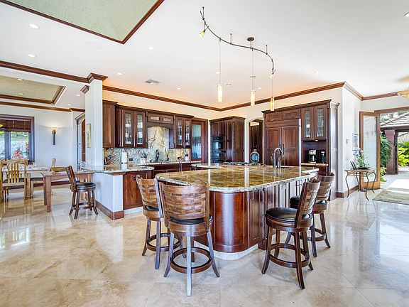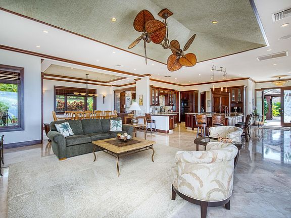 Welcome to this exquisite one level three-bedroom, four-and-a-half-bath single family home located in the prestigious Kaanapali Golf Estates on the enchanting island of Maui. It overlooks the world famous Kaanapali resort area and a Humpback Whale National Marine Sanctuary. This custom-built residence exudes the unmistakable charm of Hawaiiana island ambience while offering modern comforts and breathtaking ocean views. Upon entering this remarkable home, you'll be greeted by an open floor plan that seamlessly blends the main living areas, creating an inviting and spacious atmosphere. The large kitchen, the heart of the home, is a culinary enthusiast's dream with expansive counter space, a large pantry and custom cabinetry that provides both functionality and elegance. Whether you're preparing a casual meal or hosting a grand gathering, this well-appointed kitchen is sure to impress. The living and dining areas flow effortlessly from the kitchen, bathed in an abundance of natural light that streams in through expansive sliding glass doors and windows, revealing panoramic views of the Pacific Ocean, Lanai and Molokai. The high ceilings, adorned with mat inserts, pay homage to traditional Hawaiian craftsmanship, adding a touch of cultural authenticity to the living and dining spaces. Every detail has been meticulously designed to create a harmonious blend of modern luxury and timeless island heritage. This single-level home offers two spacious bedrooms in the main house. Both the primary and second bedroom has a private en-suite bathroom, with a walk-in shower. In addition to the bedrooms, there is a dedicated office space with views of the ocean and islands, allowing for a convenient and comfortable area to work or study. With a bathroom, this space could also serve other uses. One of the unique features of this remarkable property is the separate guest suite, known as an Ohana, which offers privacy and comfort for visiting family and friends. Complete with a wet bar, this self-contained living space is a perfect sanctuary for guests, providing a cozy retreat amidst the island paradise.The exterior of the property is equally captivating, with beautifully landscaped grounds. Immerse yourself in the stunning surroundings as you relax on the expansive lanai, savoring the gentle trade winds and breathtaking sunsets that paint the sky in hues of orange and pink. The gardens offer a picturesque backdrop for outdoor enjoyment. Situated in the prestigious Kaanapali Golf Estates, this home is ideally located for those seeking a luxurious lifestyle. The community offers access to world-class golf courses, stunning beaches, and a myriad of outdoor activities. Additionally, the nearby town of Lahaina provides an array of dining, shopping, and entertainment options, ensuring that you are never far from the vibrant energy of Maui. In conclusion, this custom-built three-bedroom, four-and-a-half-bath home is a true gem in the heart of West Maui. From its Hawaiiana island ambience to its breathtaking ocean views, this residence reflects a dedication to quality, luxury, and the unparalleled beauty of the island. With its open floor plan, high ceilings, and carefully curated details, this home offers a timeless blend of modern comfort and traditional Hawaiian charm. Embrace the tranquility of Maui living and create unforgettable memories in this captivating haven. Home is being sold unfurnished and is easy to show. Square footage information gathered from public records, deemed reliable, Buyer to do own due diligence.