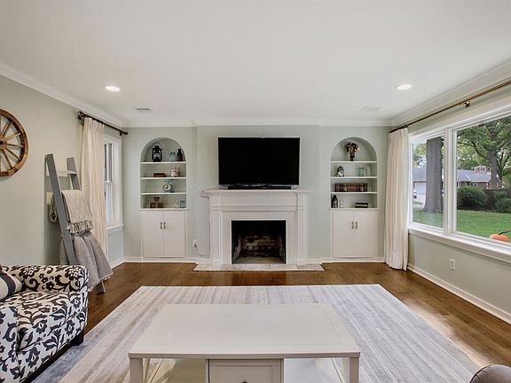 Welcome home! Fabulous sprawling Eastborough ranch, nestled on a beautiful treed lot, showcases richly-appointed designer finishes throughout. Offering 3,000 square feet of living space on the main level, this charmer has fantastic curb appeal, gorgeous hardwood flooring, white trim, crown molding, abundant niches and built-ins, two decorative fireplaces, exquisite light fixtures and hardware, professionally remodeled kitchen and main level bathrooms, an attached side load garage, spacious covered patio, and mature landscaping. Windows throughout the home soak the living spaces with natural sunlight and allow for panoramic views of the gorgeous outdoor setting. The gourmet kitchen is well suited for any cook with professional grade stainless steel appliances, a gas range, double ovens, marble countertops, soft close drawers, subway tile backsplash, an appliance garage, under cabinet lighting, and tons of cabinetry and countertop space. Conveniently located just off the kitchen, a desk, pantry and utility closet will keep your home organized and running smoothly. Entertaining is made easy with multiple fabulous living spaces, including a formal living room with a large picture window and decorative fireplace, a large great room with built-in bookcases, a vaulted/beamed ceiling, decorative brick fireplace, and french doors leading to the covered patio and a cozy basement family room with built-ins. This flexible and functional floor plan flows seamlessly for indoor/outdoor living. Retreat to a lovely master suite complete with marble flooring, expansive vanity with dual sinks and marble countertops, a built-in make-up vanity, a soaker tub, separate shower, private toilet, built-in dresser, built-in hampers and a walk-in closet. The other wing of the home features three bedrooms and a beautifully remodeled full bathroom. Extend your living space outdoors on a wonderful covered patio. The exterior is freshly repainted with new shutters, new exterior lighting, new shutters, and new oversized gutters with gutter guards. Pride of ownership shows throughout in this stunning home, tucked in the heart of NE Wichita; don't miss! There are financing incentives available on this property from SIRVA mortgage.