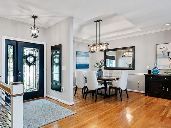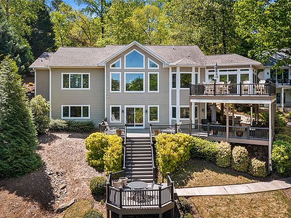 Imagine a stunning 4-bedroom, 3-bathroom home nestled on the shores of Lake Keowee, offering breathtaking views of both the teal blue waters and the surrounding mountain landscape. As you approach the home, you're greeted by a long, winding driveway that leads to a spacious, meticulously maintained property. The exterior of the house features a combination of natural stone and wood accents, perfectly blending with the natural surroundings. Large windows throughout the house allow natural light to flood the interiors, while also providing panoramic views of the lake and the mountains in the distance.