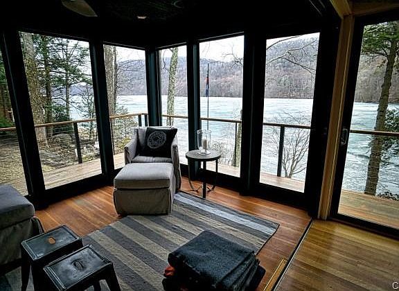 Available for the Month of August through Labor Day weekend. Set amongst the quiet pines of Birch Groves, this fully renovated and updated, quintessential lake house, with tall vaulted ceilings, walls of windows, and exquisite decorating is the perfect summer getaway. This open concept home boasts a model kitchen with granite countertops and stainless steel appliances, while the main living space is accented with vaulted ceilings, exposed beams, and a floor to ceiling fieldstone fireplace. The Western facade of the home is covered in walls of glass, perfect for enjoying sunset views of the lake each evening. This home is very private with an enclosed sun porch, wraparound deck, and two additional stone patios. This furnished lake house is available for August rental, through Labor Day weekend.